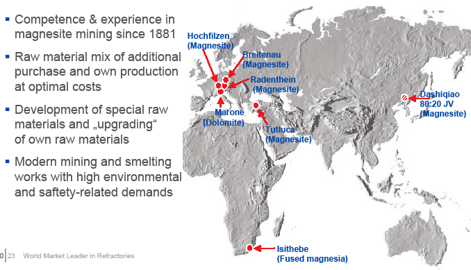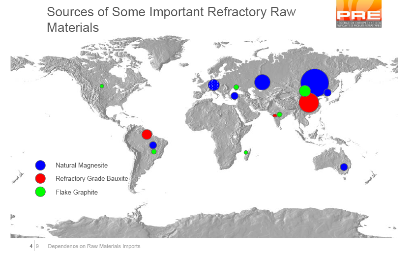 There are only a few refractory raw materials available in Europe, i.e. fireclay, silica, and alusite, dolomite, and some types of magnesite. But for many qualities China is the main source and supplies the World: