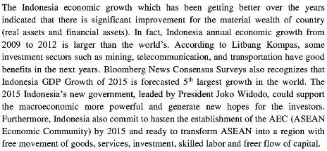 1. The historical data of research is selected from Q1/2000 to Q4/2014 as identification of Indonesia business c