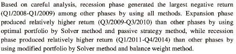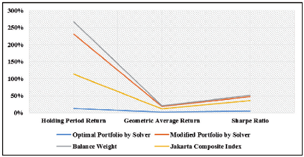 For measuring the effectiveness of strategy implementation to investment portfolio, the author use Sharpe ratio and additional indicators such as holding period return and geometric average return. By assuming some research limitations, sector rotation strategy with balance weight method has the best result in comparison with other strategies. Nevertheless, optimal portfolio by Solver which gives the lowest result than the others indicates insufficient historical data cannot forecast the future performance precisely although the result is still positive and not too bad for being counted.