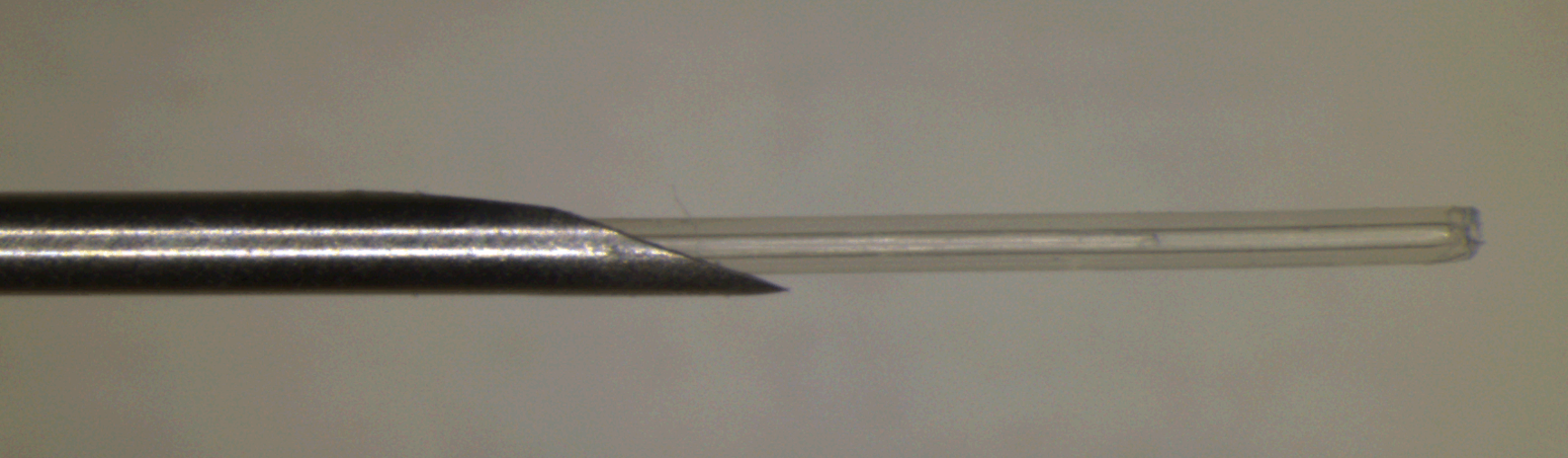 syringe piston, while the transparent inner catheter is inserted into a 21 G (OD 0.81 mm)