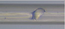 Fig. 13. OCT side-view needle probe showing the tubing and angle-polished ball lens. (a)