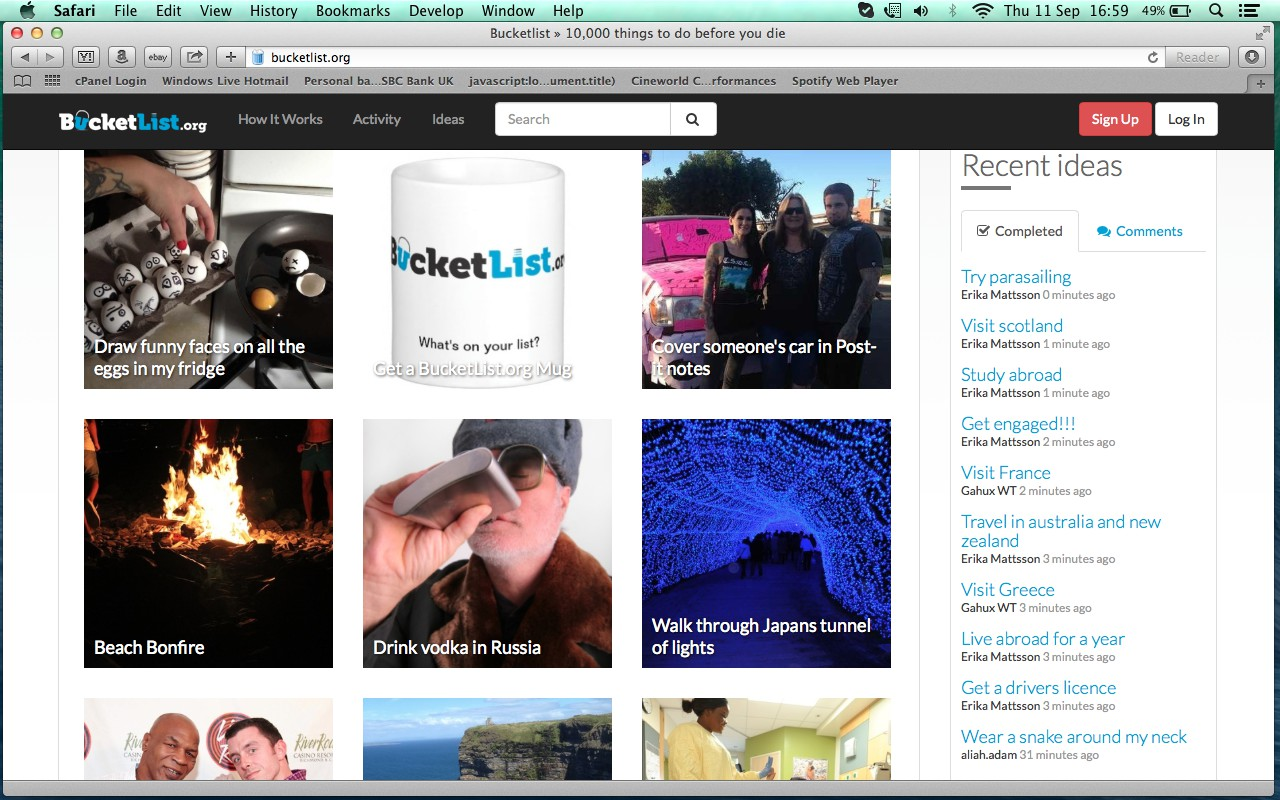 Type “bucketlist” into Google and you can get ideas for what other people are doing with their lives, or want to do with their lives, that are niche markets that you could get into.