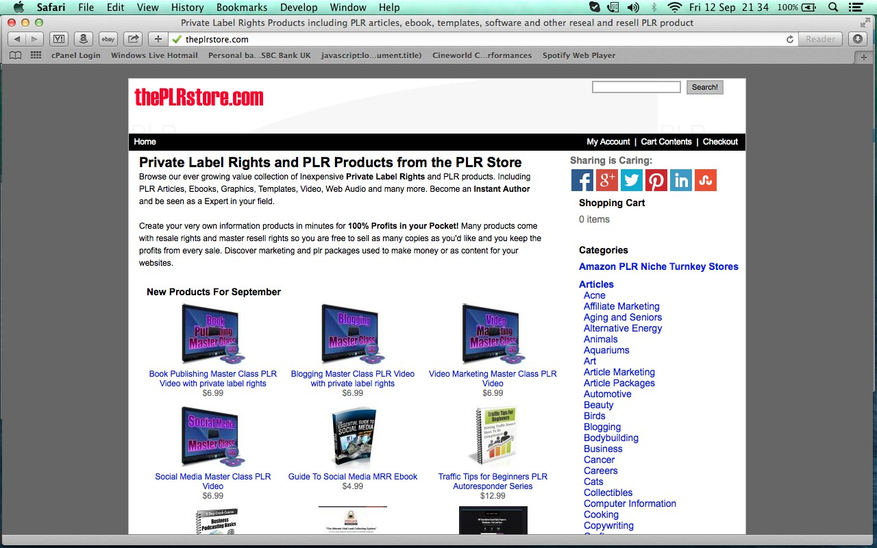 On the right hand side of The PLR Store, you can see a list of the categories of eBooks and articles that they are selling.