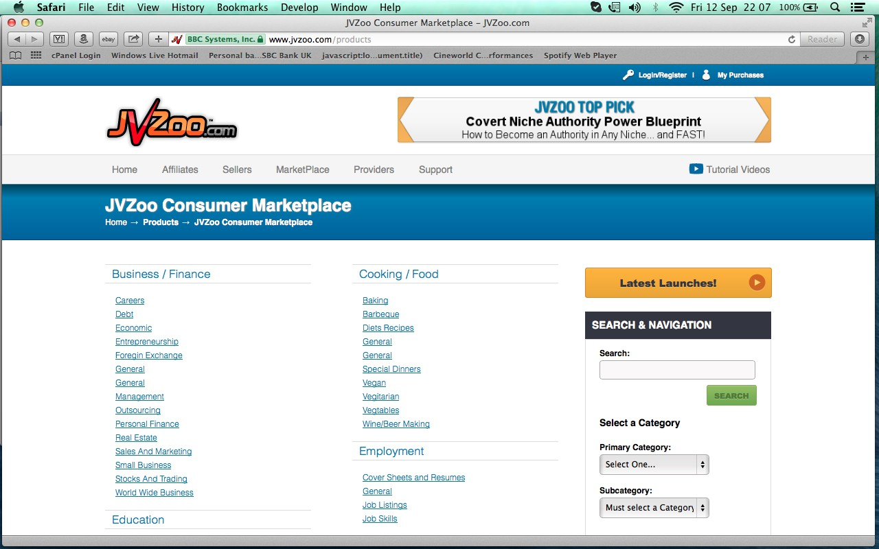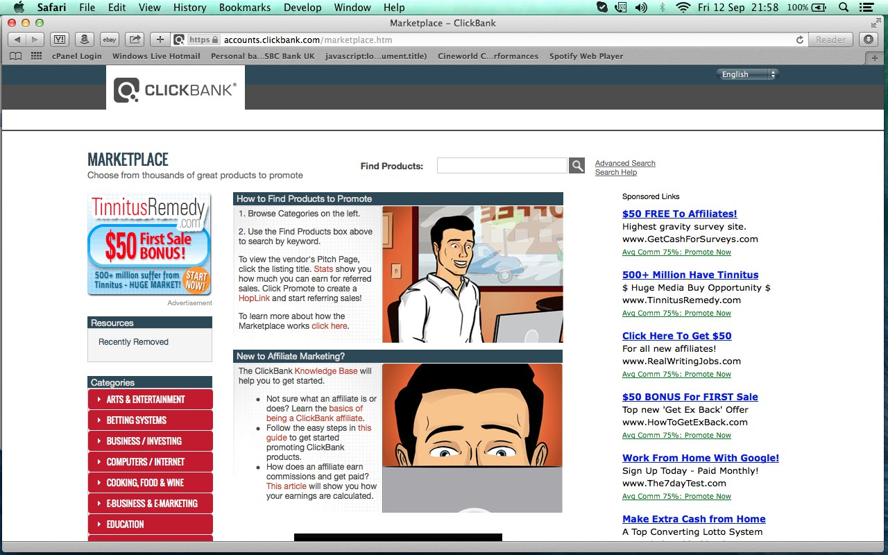 The above is a screenshot of the Clickbank home page. When you click on “Marketplace” at the top right menu, you go through to the following page: