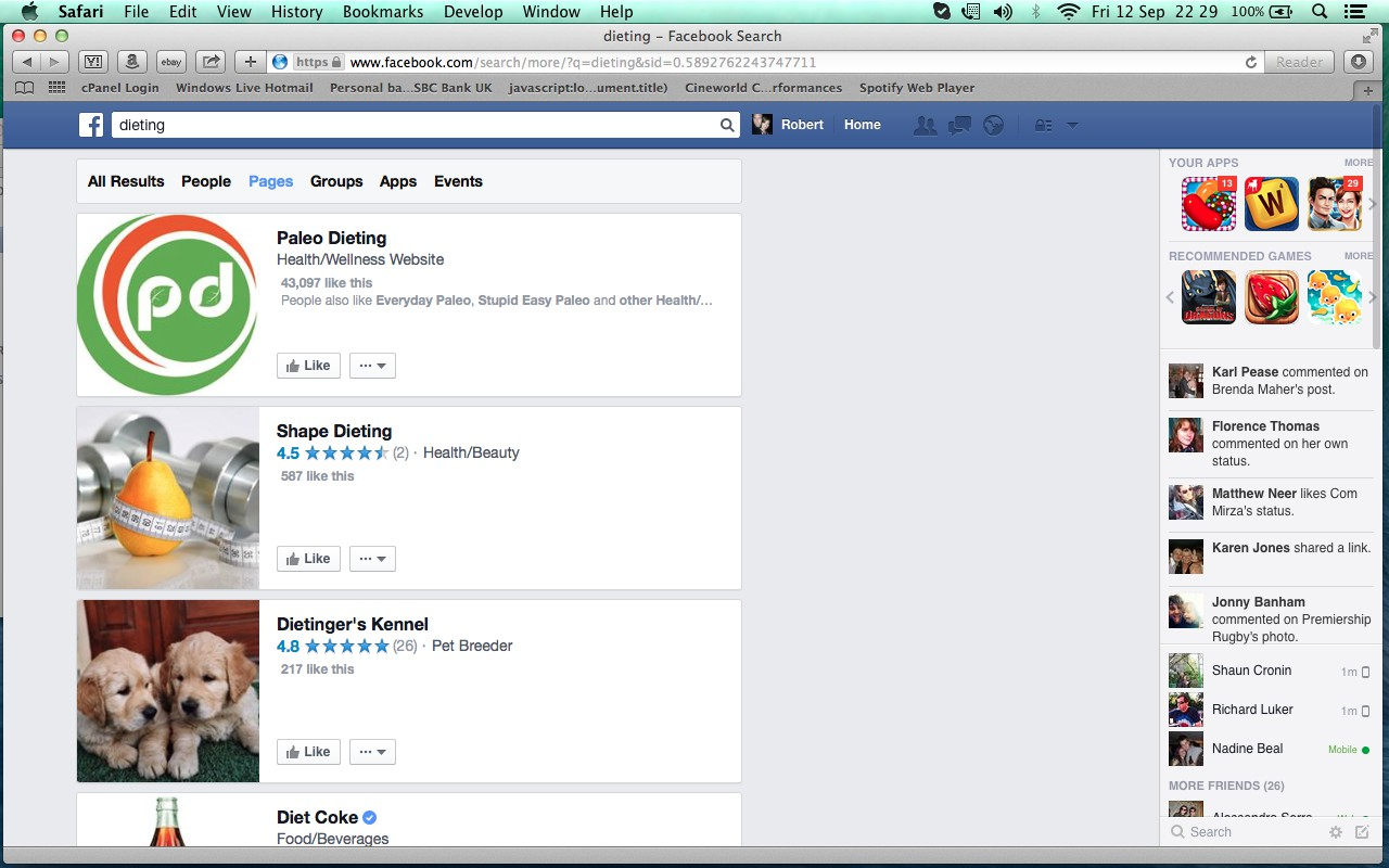 You can search for pages and groups that are based around dieting, to get niche market ideas, in this case, the pages option brings up Paleo Dieting again: