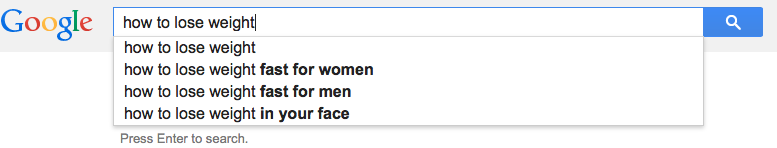 There are also Google suggestions that can give you ideas of niche markets. For example, you could type in “how to lose weight” and see what is suggests to search for: