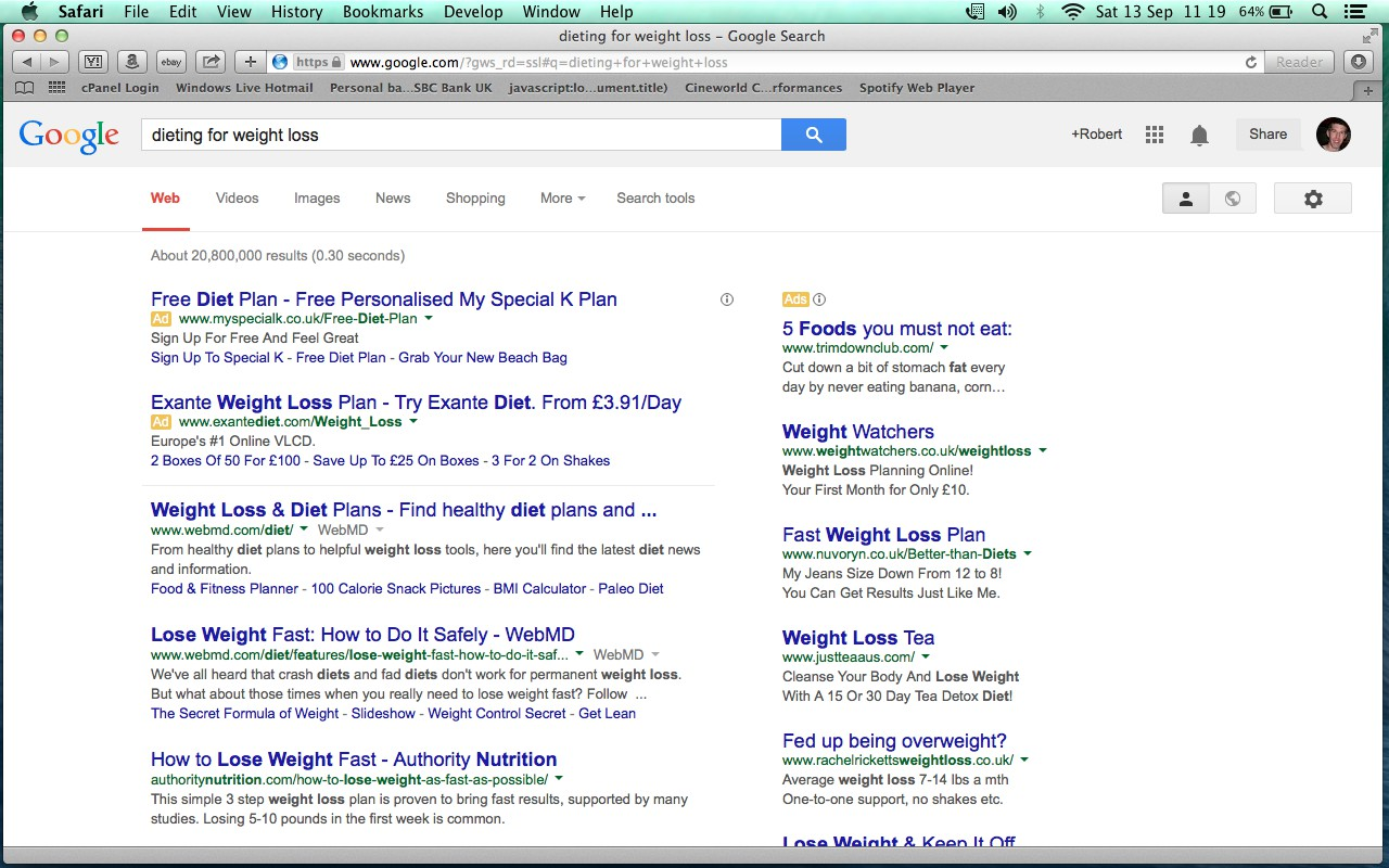 As you can see there are loads of adverts, at the top of the search results and up the side of the organic listings.