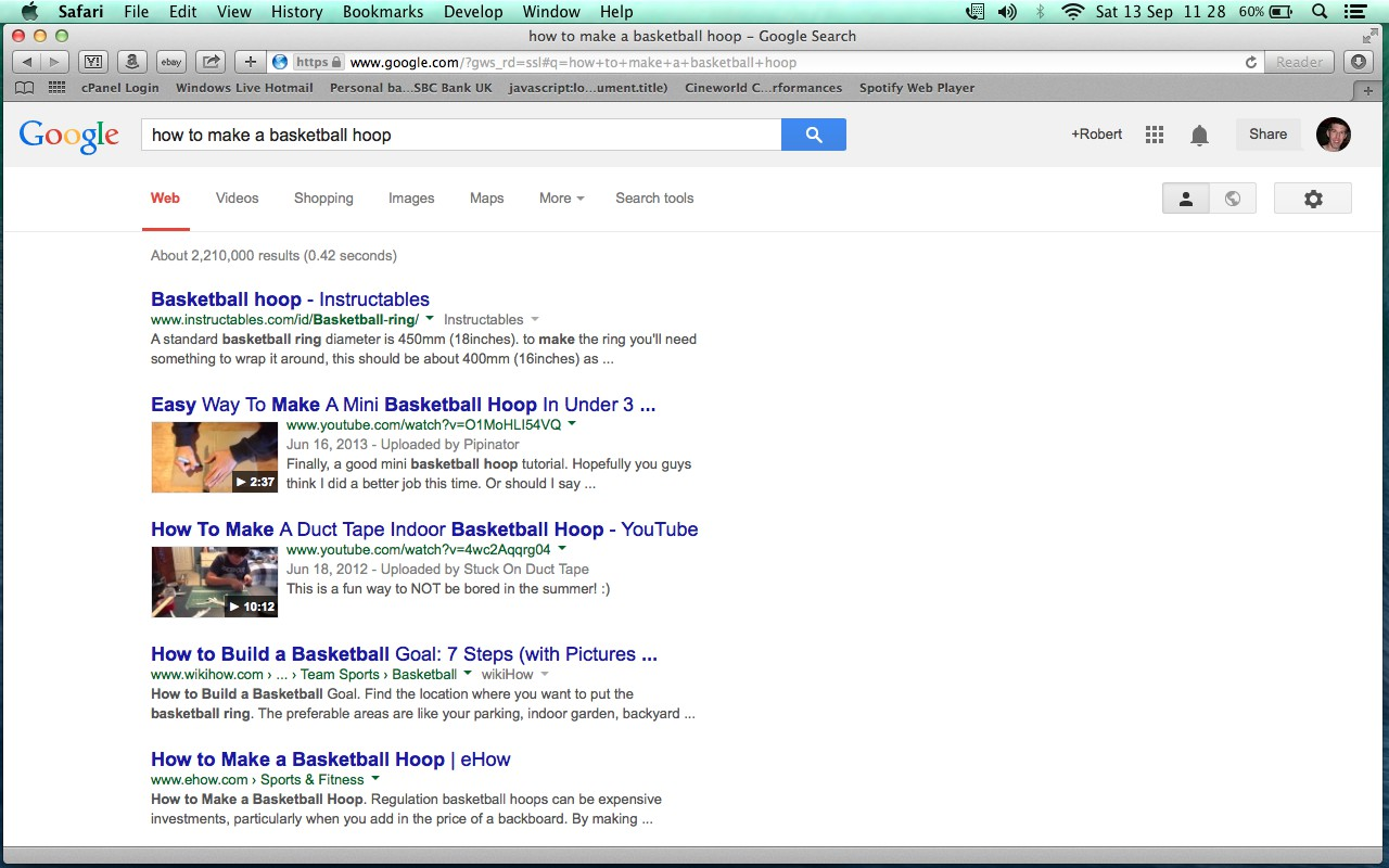 In the above image there are no adverts to be seen in the Google listings for “how to make a basketball hoop”. These are 2 extreme examples but they show the point I’m trying to make!