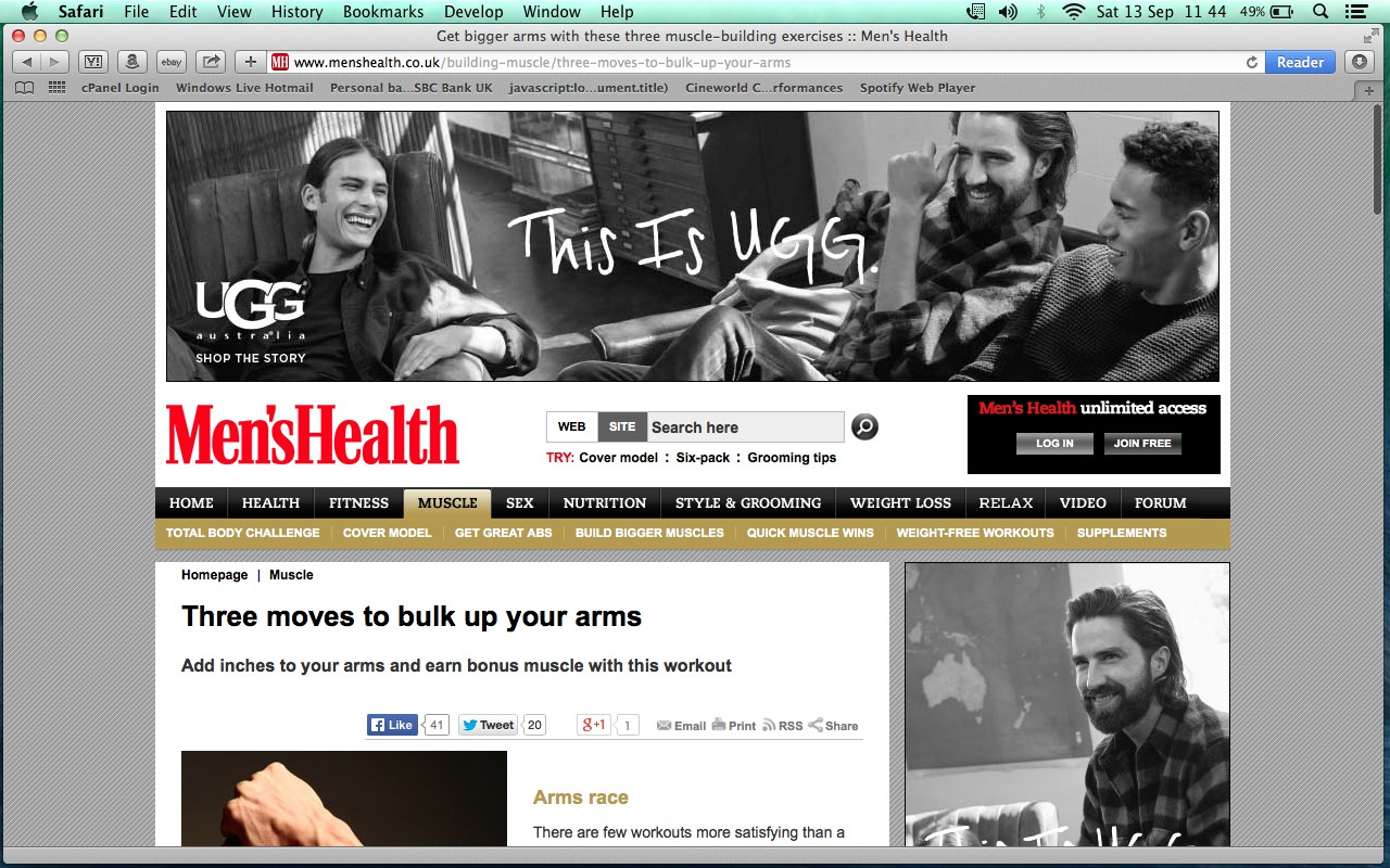You can see, if you go to the website and scroll through, there are various adverts for related products and services to men’s health and fitness products.