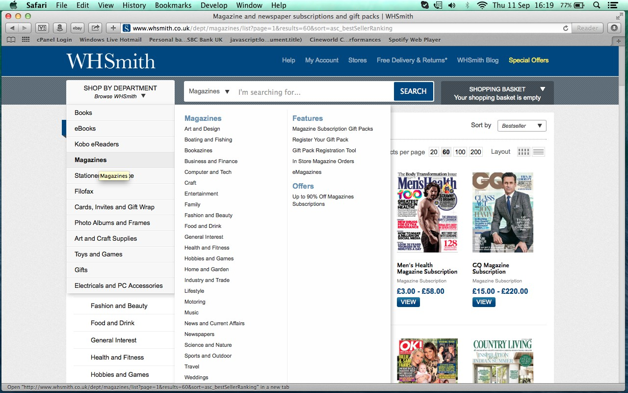 There is a popular shop in the UK called WHSmiths, which sells magazines, here is a screenshot of the categories of magazines that they have: