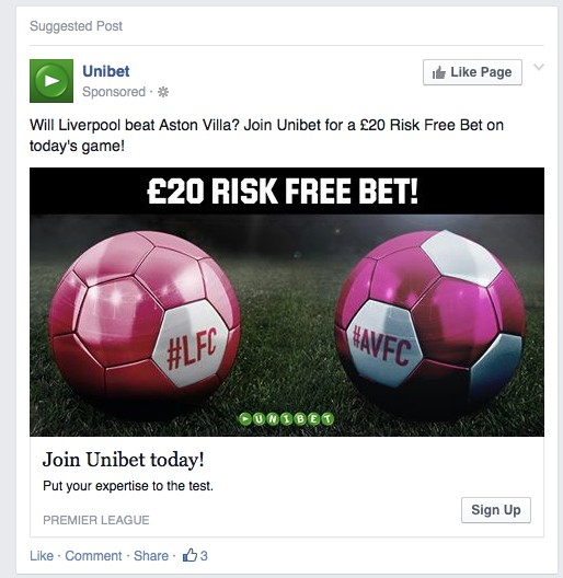 In this case, because I’m an Aston Villa fan, I’m being targeted to bet on a match. This shows that gambling is a niche market that businesses are willing to spend money to advertise in.