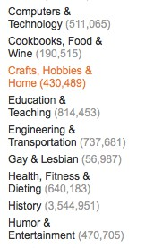 Similar to seeing what magazines there are out there, you can look at the book categories that books are selling in on Amazon. And that goes for Kindle as well as physical books.