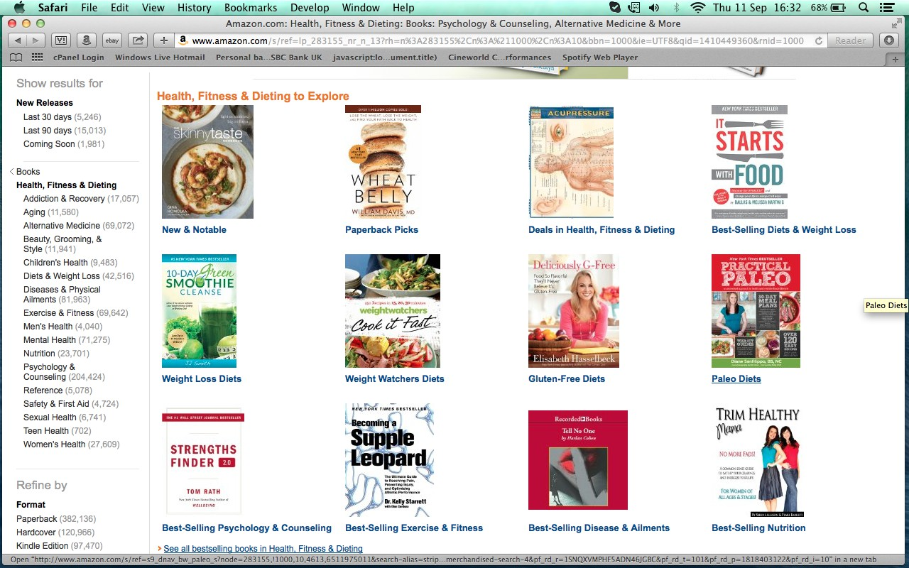 And already we can see several niche markets in one category: paleo dieting, weight loss for Mothers, gluten free diets, diseases and ailments.