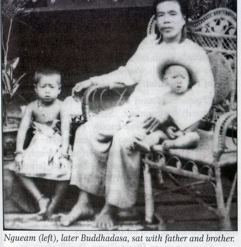Ajahn Buddhadasa was born in southern Thailand in 1906, and given the name Ngueam Panich. He was the eldest of three children of Xiang Panich, a middle class merchant of Chinese ancestry, and a Thai mother named Kluean. His family ran a small grocery store in Phum Riang, near the ancient Kingdom of Chaiya, in southern Thailand.