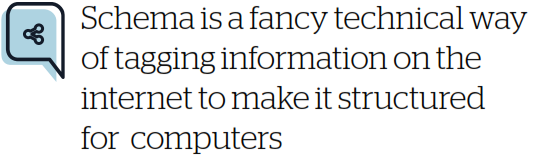 Schema is, in a general sense, a fancy technical way of tagging information on the internet to make it structured so that computers (like search engines) can understand it better. It’s markup that’s added to specific types of information on a regular website, like event listings, hidden in the code where only search engines will see it.