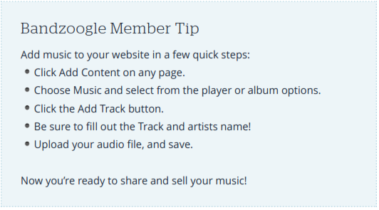 So what you can do now is add music to your band website. Use a website platform that supports this schema, like Bandzoogle.