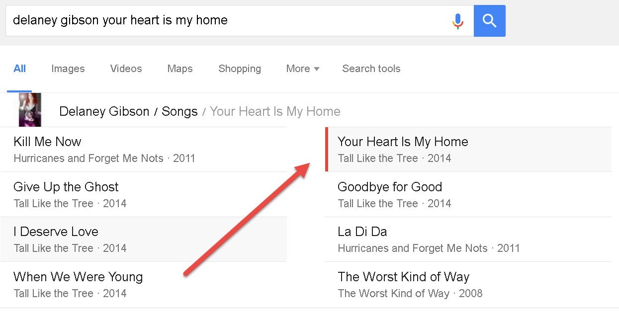 And how it looks in the song SERPs.