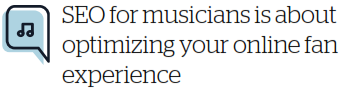 Let’s drill that point in: SEO for musicians is about optimizing your online fan experience, when they’re searching for your music and content.
