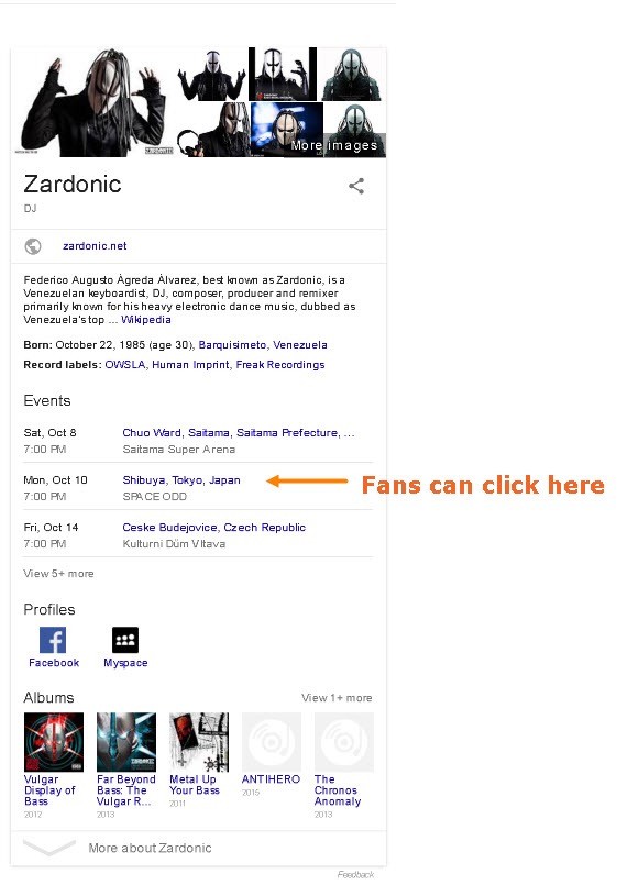 They could also reach it by just typing in a search term like “zardonic tour dates”.