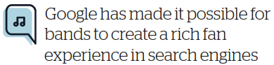 The point is, Google has gone to the trouble of making it possible for bands to create a rich fan experience on these pages, but it’s up to you to take advantage of it by feeding Google with the right information.