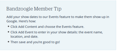 Bandzoogle, by the way, makes this really easy for you when you use our Events feature, because we automatically add structured data to your website when you add events. Bandzoogle is the only website builder that is recognized by Google for event markup. We’ll talk more about that later.