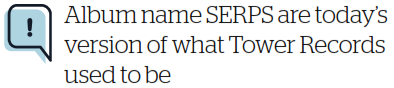 If your albums are listed in the Knowledge Panel for your band, fans can click on them and land on your album SERP.