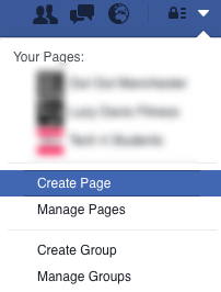 To create a Facebook page, log in to Facebook and select Create Page from the dropdown arrow.