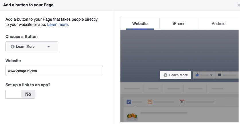 Facebook allows you to add a call to action button on your page. This catches the attention of the visitor and can direct them to a specific action.