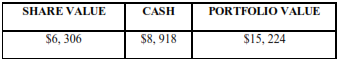 I multiplied $15, 224 X .33 = $5,024. Thus $5,024 is 1/3 of my PORTFOLIO VALUE. So I subtracted the cash balance: