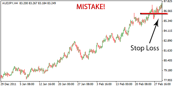 Look at the chart above. The trader who placed the Stop Loss right after entering the market deserves great applause but the problem is, the Stop Loss is too tight! Give the market enough space to breath or the Stop Loss will be hit very quickly.