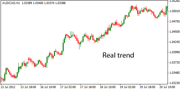 What is actually in the chart are a few consecutive long green candlesticks. This is not a real trend, but immediate price action, tempting traders to initiate trades and experience a costly and painful exercise. To avoid falling into this trap, you need to focus on longer trends. This is what a real trend looks like:
