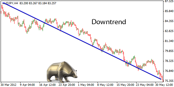 3. Connect the upper left corner with the lower right corner. If the line overlaps with the price bars, you have found a reliable downtrend.