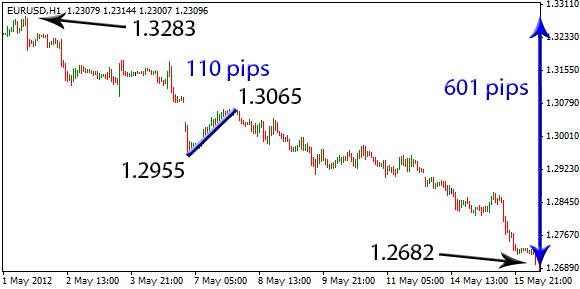 1.3283 – 1.2682 = 0.0601 (601 pips)