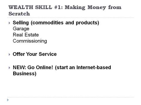 ww.articlesbase.com/business-articles/five-core-steps-to-make-you-earn-your-millions-even-if-you-start-from-scratch-657424.html WEALTH SKILL #1: Making Money from Scratch It may be quite skeptical to become a millionaire from scratch. But it is true.