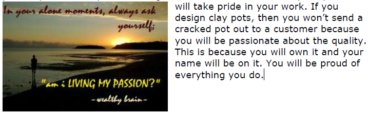 As you are living your passion, you will not be putting out the best every single time. You need to find ways to continuously improve processes that are slowing you down, causing poor quality, or frustrating you. When you continue to improve the process, you will do better as time goes by and begin to see how well you can do. Productivity improves after time once you find ways to make things better. When you first start off with your passion, everything may seem in disarray and a mess. You can fix this but it will take time and trials. You may try something fifteen times before you label a method as the most productive and quality method.