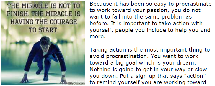 You want to have people on your team that are action oriented also. Don’t have non-action oriented people work with you. If you have a really supportive aunt that likes to sit around and talk but not work hard, then you cannot have her help you with your passion. She may be the person you can have help you create hype for your endeavor or business but not to take action. Find a place for her so she can help because you need the support.