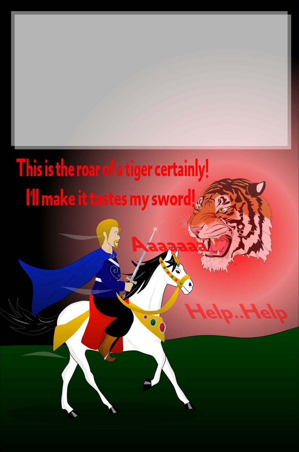 But when he arrived, the horse whined scared because of hearing a frightening close roar, so the King drew his long white sword and run towards the sound with courage, and when the horse got scared, he dismounted and attacked the tiger himself..!