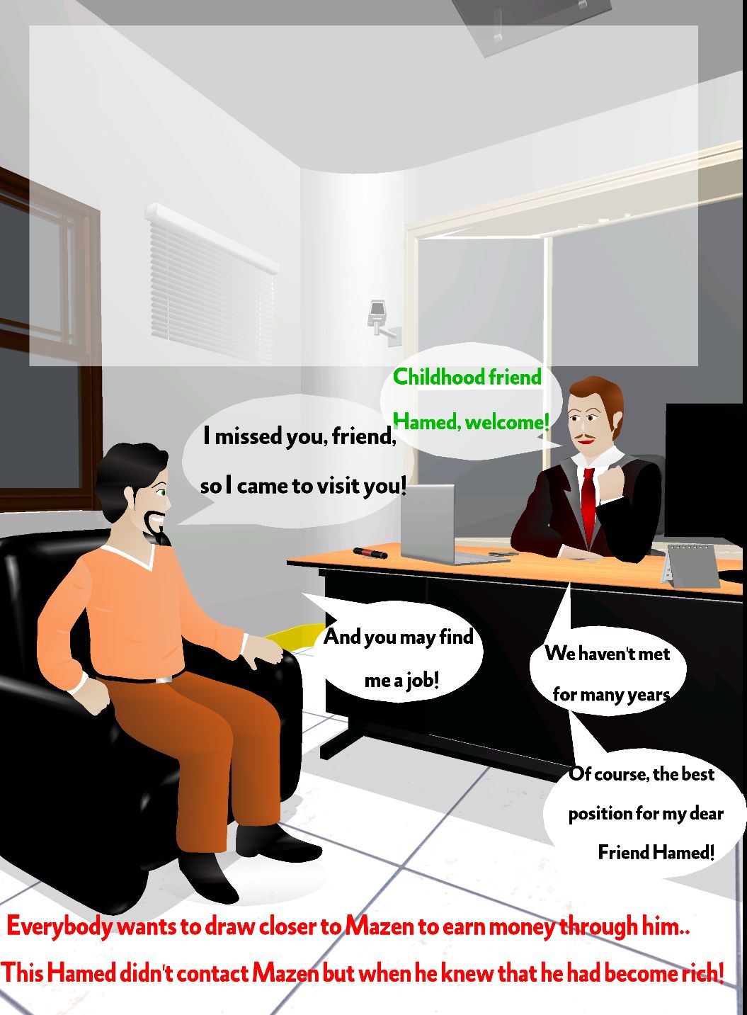 After two days, Mazen sent another man to give charity to some of the poor. Again, people informed about the reward that the giver of charity, so greedy shone in their eyes, a lot of them hurried to give their money as charity hoping that Mazen would know about them and reward them. Within a day, Destiny smiled at many of the poor; Allah saved them from misery with Mazen’s trick, they turned into rich people overnight. Mazen rewarded those who gave charity with a large amount only. As for the others, they understood the humanitarian message of Mazen, they realized that Mazen's trick defeated them and defeated their selfishness!!