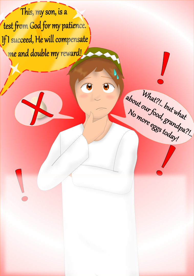 So the fraudster smiled and left victorious to find his friend -the foolish thief- laughing after the feathers were gone from his face because my grandfather lost his patience and got angry for himself, but if my grandfather had remained patient and relied on Al ah to take his right in His own way, the reward would have increased, and the feathers remained on the face of the thief to put him in shame forever.. I wish you hadn't lost your patience, grandpa!