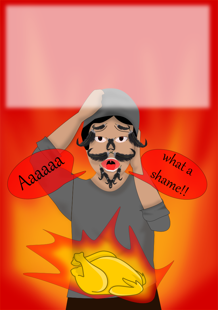 What I learned later is that when the thief was plucking the feathers of the chicken after boiling water and preparing the spices to cook it, something happened to him that he hadn't thought of, as feathers like the feathers of a chicken grew on his face, so the chicken fel from his hand and he looked at the mirror in terror and bewilderment.. what a shame !..