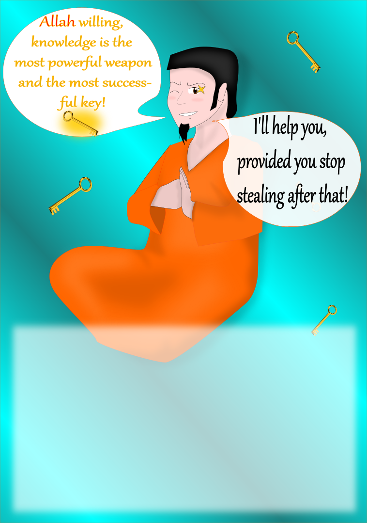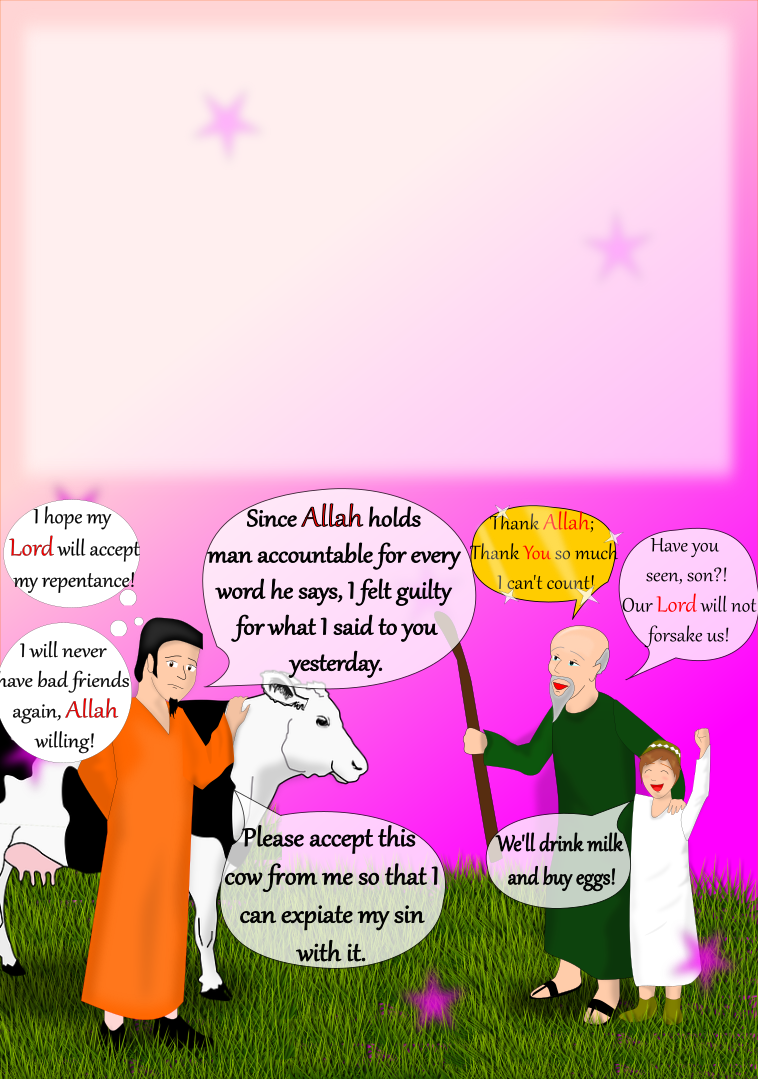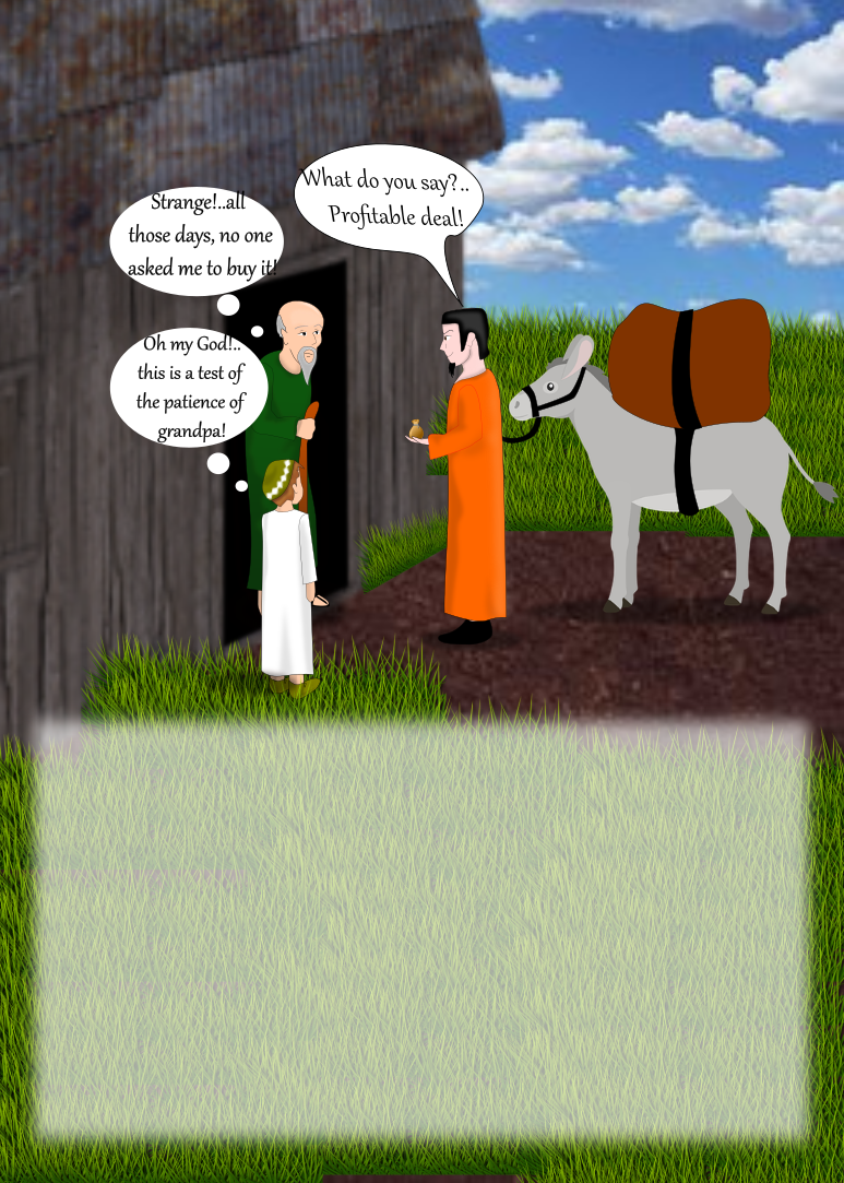 In fact, that was a test from Al ah for my grandfather's patience, but after that, Al ah compensated him for his sustenance when the merchant came repentant and gave us a cow that gives us fresh milk . My grandfather and I broke our fast with joy after we were hungry in the past two night!.. But do you think that the thief wil be escaped by his act?