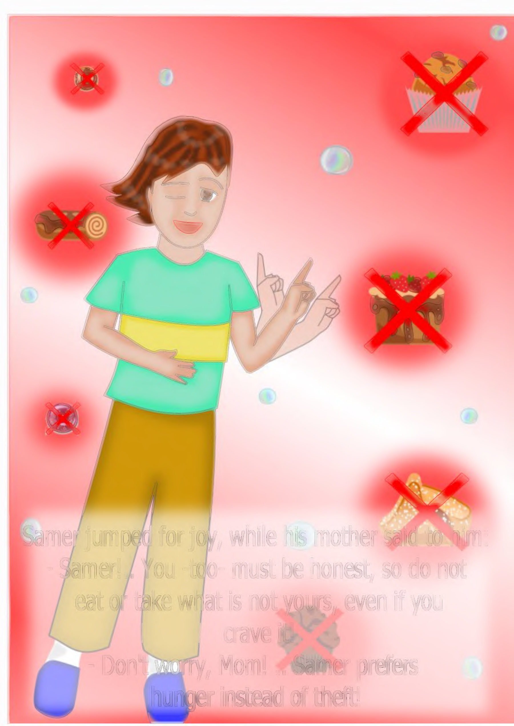 - But.. wait, Maysa.. I wil ask forgiveness from Al ah and buy sweets with my money tomorrow and make up for what I ate.. I'm sorry, sister.. I promise to be honorable and keep my honesty as I keep my eyes!