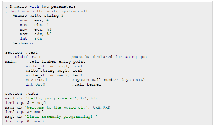 The macro begins with the %macro directive and ends with the %endmacro directive.