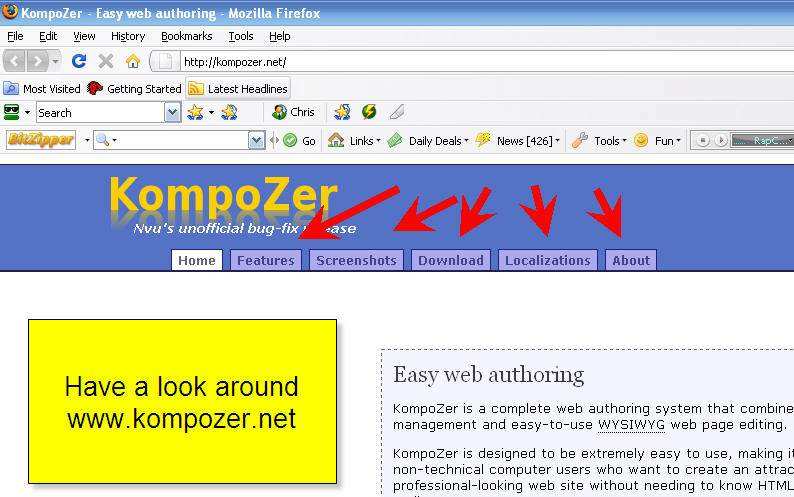 Look at Kompozers home page www.kompozer.net Click on the various buttons. They will teach you some of what I have already taught you in this eBook – and a lot more. By slowly working Page 122