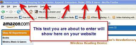 The name of every web page appears at the top left hand side of the screen in that blue colored bar that every website has. Here’s an example from www.amazon.com