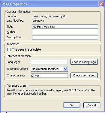For the sake of this example – type in My First Web Site Click OK.