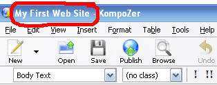 Also - please note the former Untitled tab on Kompozer – has also had its name changed. The tab now reads My First Web Site.