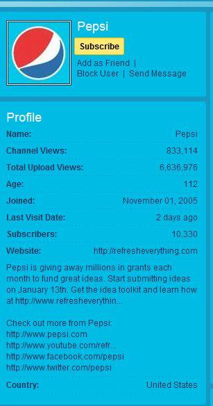 Well, the reason is very simple. First of all, the personal profile section on the YouTube channel has limited space for them to express who they are. Second of all, the background and the theme of the channel page already hint who and what kind of company Pepsi is, but not so enough. Pepsi