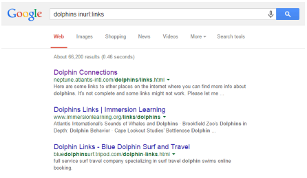 This searches for the keyword 'dolphins' and pages which have the word 'links' in the url.