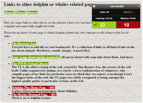The extension will highlight broken links – there are 10.